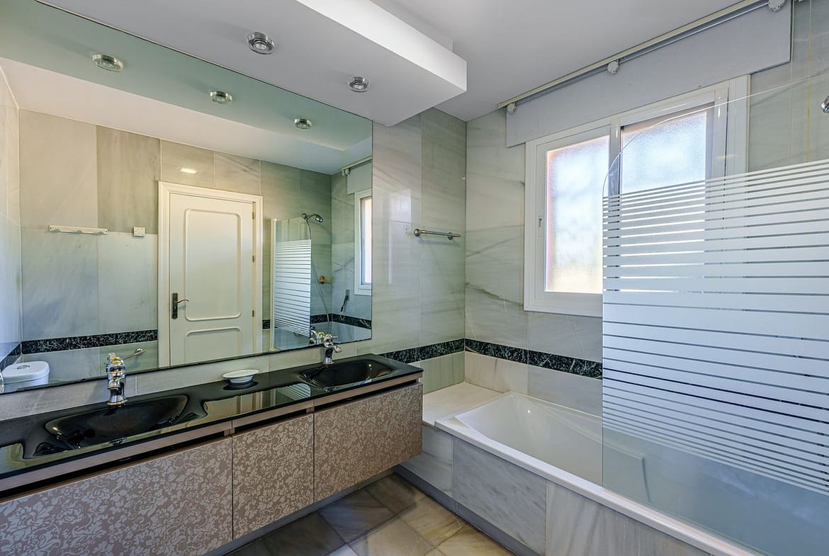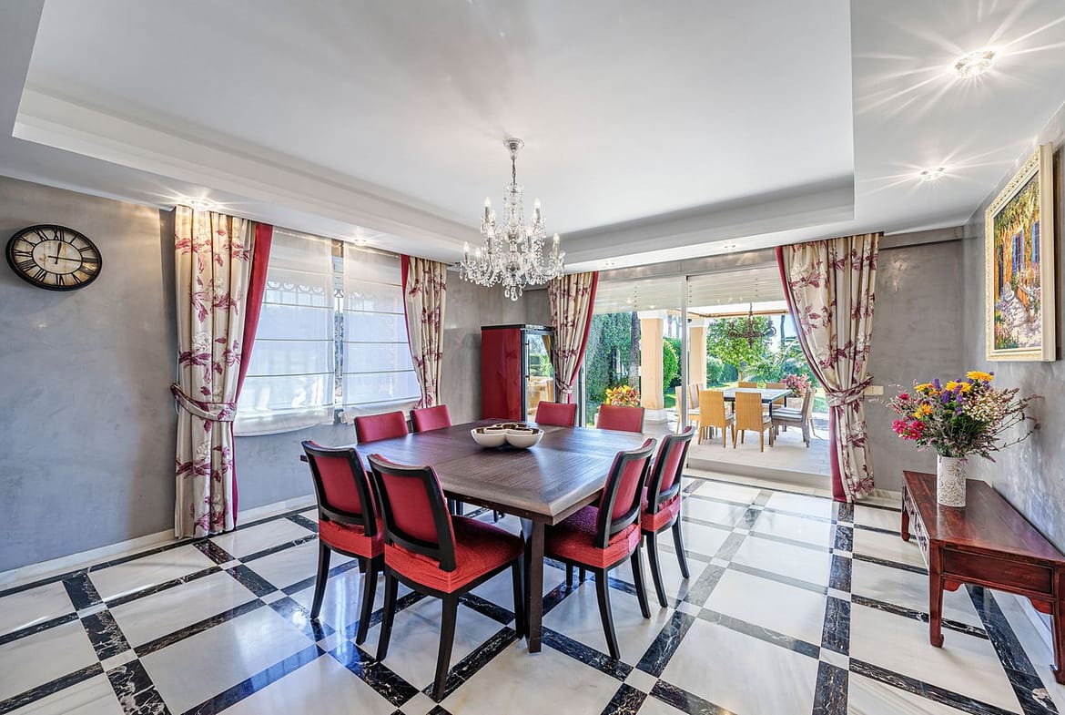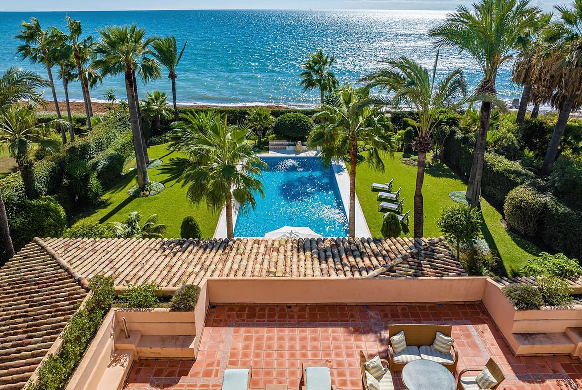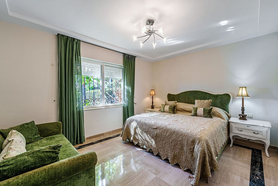 Spacious, flat plot with direct access to the sea (private gate), quiet, green area. On a plot of 2 residential 2-storey houses (the main house is 6 bedrooms, a large apartment for the servants, a garage for 2 cars, a kitchen, a dining room, a hall, 2 terraces + a guest toilet) and a small house (2 bedrooms, 2 bathrooms, laundry room, pantry, large hall and open kitchen), excellent condition, all modern bathtubs in both houses are all condo and floor heating in all bathrooms and there is also a fireplace in the main house, as well as 1 building separately with a garage for 4 places, a kitchen and a barbecue, there is also a playground . There is a pond on site and a large pool. From the main bedroom (about 30 meters) on the second floor there is a direct view of the sea. From the additional bedroom on the same floor is also the same view. They have a common large terrace. All houses are fully furnished, the garden is well-groomed, there are orange and lemon trees, palm trees and so on. A security system with video cameras along the internal and external perimeters has been installed. All houses are bright and spacious, all bedrooms are of good size, all with their own bathrooms in all houses.